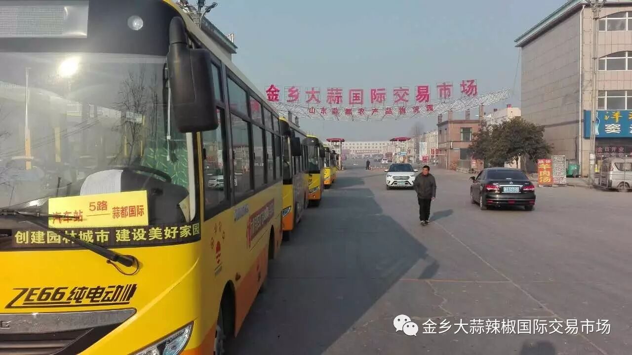 Jinxiang garlic chili international trading market is the key investment project in Jinxiang County, now has more than 300 merchants settled. Today, the 5 bus in the market, people in the East Gate market can bus to Jinxiang bus station, not only convenient for the masses, but also for the service enterprises, activate market, play a positive role in promoting local economic development.