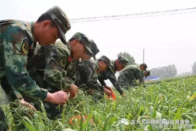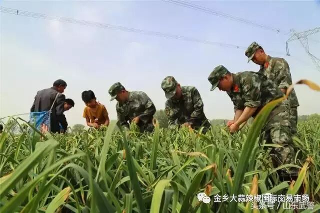 当认真了解了蒜农们的困境后,武警菏泽支队立即组织官兵深入田间地头,帮老百姓义务拔蒜薹,用军人的手帮助蒜农跨过这道坎。