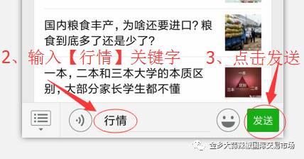 3、点击发送,系统将会自动回复平台编辑好的行情信息