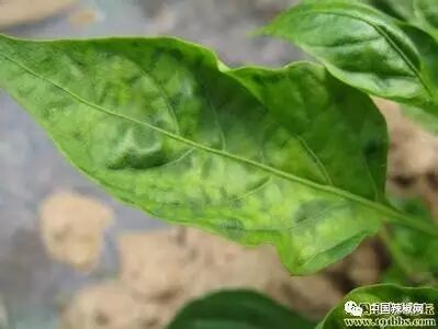 1.症状:辣椒病毒病主要是花叶病毒病。常发生在顶部叶片,症状表现为叶片花叶、黄化、卷叶;植株表现为皱缩变小或果实上有条斑。严重时,造成整株落叶,使辣椒光合作用严重受阻或者出现顶部变黑、坏死。