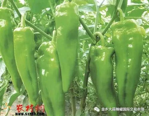 五、亩产超万斤的牛角椒——超前大椒:该品种由国外亲本精选杂交而成,保持其中早熟、果大,高抗病毒,座果极强外,产量更高,商品性更好,耐热、高产,粗长牛角型,颜色浅绿,果皮光滑肉厚,耐运输,连续座果能力强。果长18-23cm,单果重150-200g,亩产7000公斤以上,是春秋栽培藓椒上市最理想品种。
