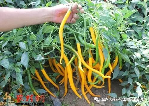 七、高产黄线椒——皇帝:中早熟,长势强,株型紧凑,果实长线形,果色金黄色,光泽度好,抗病毒病和疫病。果长20厘米左右,果径1.6厘米,单果重20克左右,亩产可达3500公斤,果实光滑顺直,首尾匀称,辣味浓香,品质优,硬度好,耐储运,货架期长,适合鲜食及加工,属珍稀品种,卖价高,素有黄金条之称。