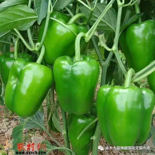 六、大果型甜椒——瑞特:该品种是国外大甜椒作父本,一代杂交种。中熟,果实绿色,方灯笼形,单果重300克左右,大果可达400克以上,亩产量7000公斤以上。连续坐果能力强,膨果快,果实上下整齐。商品性超群,产量极高。适宜春秋保护地和露地栽培,秋延保护地栽培表现更佳。是目前甜椒种最优质品种。